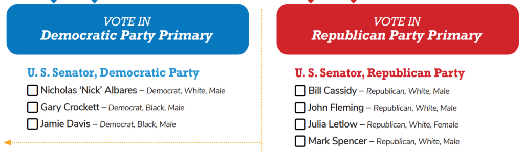 The new “closed party primary system” affects whether YOU can vote in primary elections for US Senate, US House of Representatives, Louisiana Supreme Court, Public Service Commission, and Board of Elementary and Secondary Education.